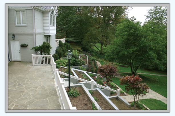 This photo gives you a glimpse of the tidy new plant beds from a different angle. See how the layered walls make for perfectly organized gardens!