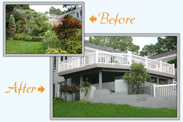 In addition to the new retaining walls, stairs, and railings, we also extended