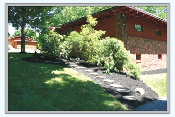 Before laying the new mulch in this area leading up to the house, we removed all of the stepping stones and then replaced them on top of the freshly spread mulch.
