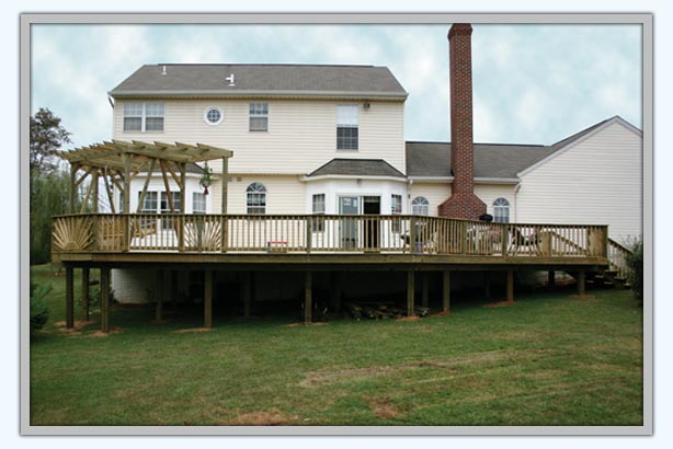 The photo above gives you another angle of view on the homeowner's newly completed, big, beautiful deck and swing arbor.