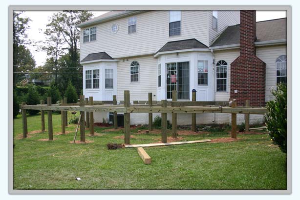 Next, the support beams were bolted onto the 6"x6" posts.