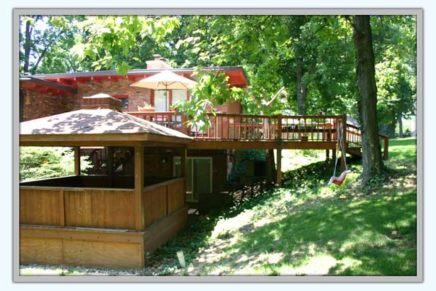 This photo was taken from the back yard and shows how the new extension and stairs on the deck give the family convenient access to the back/side yard.