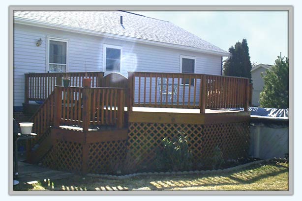 We built this deck off the back of the house and around the homeowner's existing swimming pool.