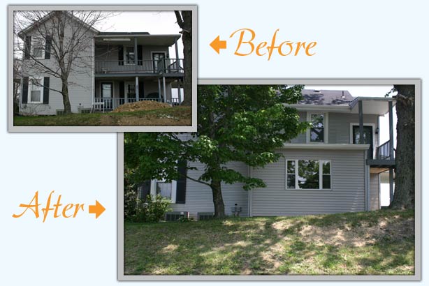 We first took out the old balcony, porch and section of roof overhang that would no longer