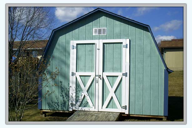 Another photo of the new, freshly painted storage shed.